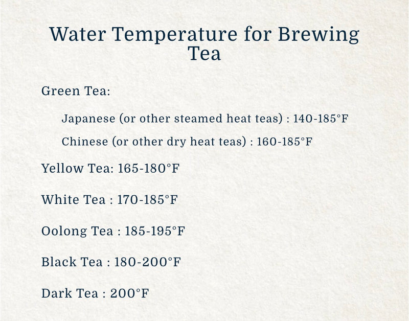Each type of tea has an ideal range of temperatures to be applied in brewing because the wrong water temperature can cause an over extraction or under extraction of polyphenols (tannins), which can alter the flavor of your tea.