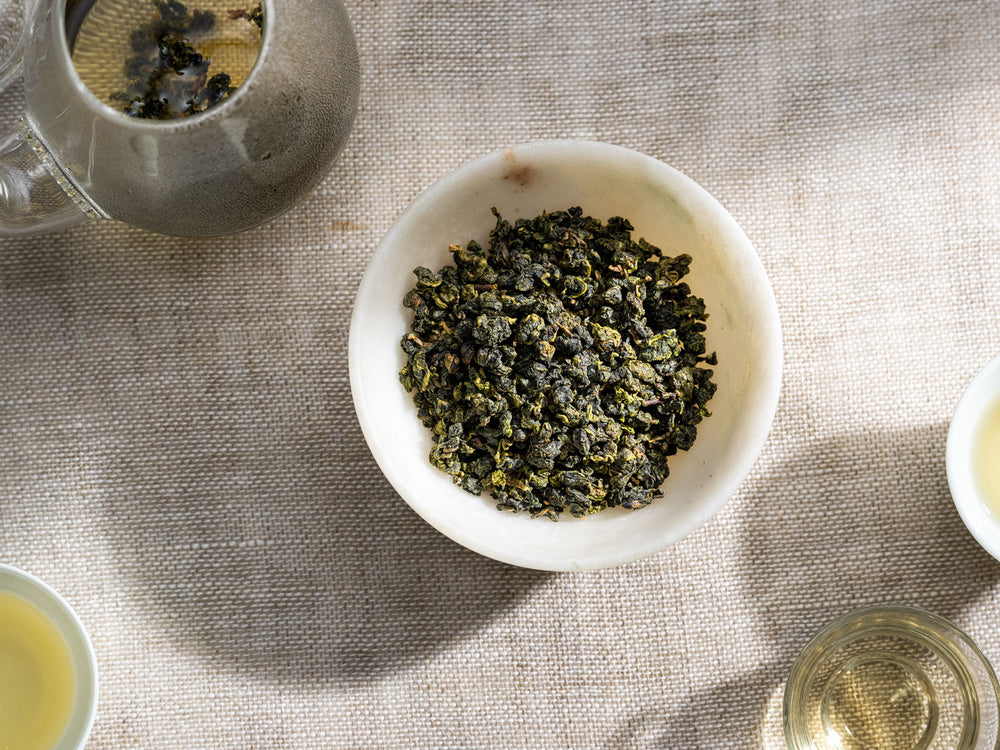 Four Seasons Spring is lightly oxidized, tightly rolled, ball-shaped oolong tea that is harvested twice each year in Taiwan's central highlands. Made from the Si Ji Chun, ("Four Seasons Spring") cultivar, Jade Oolong has a golden-green, medium-bodied infusion with a very floral, long-lasting aromatic complexity evocative of fresh gardenia, freesia blossoms and tropical fruit. Grown at elevations of 500-850 meters above sea level in the Mingjian Village of Nantou, Taiwan.